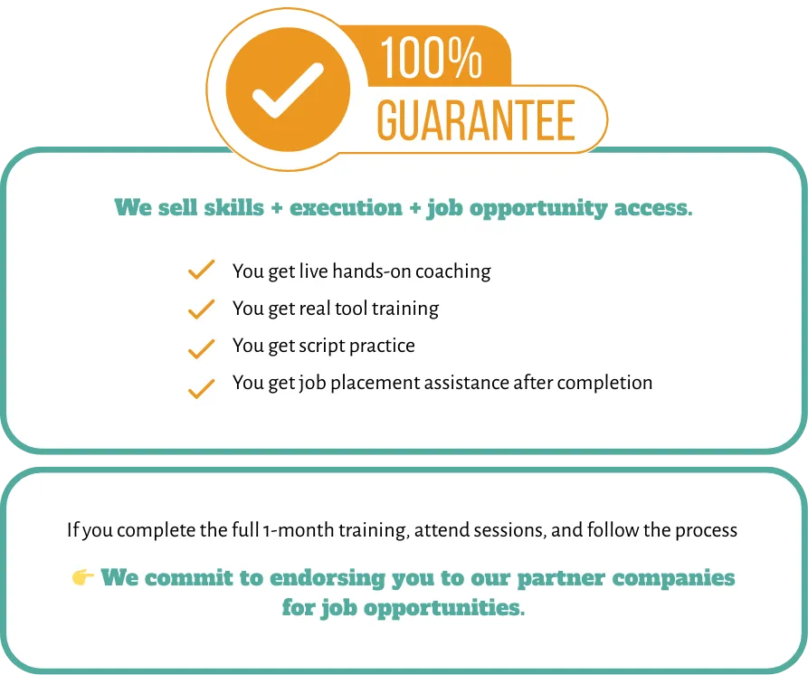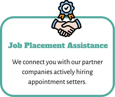 After completing the course and certification, we introduce you to our network of 50+ partner companies actively hiring appointment setters. We help you prepare for interviews and guide you through the application process.